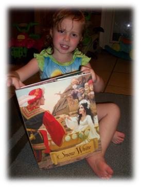 The Story about Snow White is beautifully illustrated in this book. The Story isn’t written in a “baby” like style, it is a very beautiful written story translated from the original version. The pictures are beautiful, Charles Santore did a wonderful job. Every character has an actual human like face; so each dwarf of the seven dwarfs has a real face and Snow White is a pretty as she can be. It makes the story more real with my little ones. My Toddler asked me over and over to read it to her, she loved it. We had laughs in-between the movie, we had some sad parts, where my Toddler said “oh no, what next” and other parts in the story we both scared each other.. it was a lot of fun reading this book with my Toddler and it brought back a lot of childhood memories from when I was little and my mom read the HUGE Brother Grimm’s Book that I had when I was little.