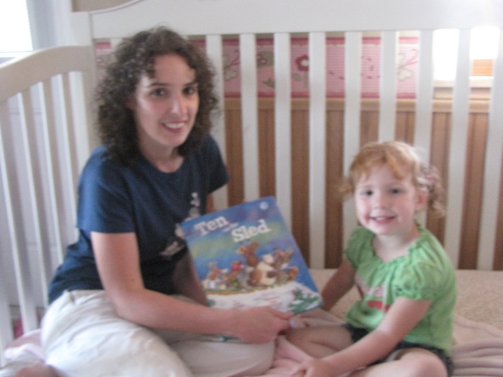 Turns out this book is super cute. The pictures are just wonderful and I love the colors. The story itself is about 10 friends who want to go play in the snow and take a sleigh ride; along the way they had quit the adventure and also loosing some friends along the way; but in the end all 10 ended up back on the sleigh again. This is a fun counting book from 1 to 10;