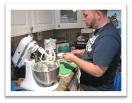 - About 1 cup at a time, add 3 ½ cups of all-purpose flour, mixing thoroughly each time until flour is completely incorporated.