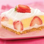 - Beat cream cheese and 2 Tbsp. milk in large bowl with wire whisk until well blended. Gently stir in half of the whipped topping. Spread onto crust; top with strawberries. Pour 3-1/2 cups milk into large bowl. Add dry pudding mixes. Beat 2 min. Pour over strawberries.