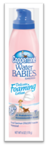 - NEW! COPPERTONE® Water BABIES® Sunscreen Foaming Lotion: A unique, light and airy foam innovation from the #1 pediatrician-recommended brand. The sunscreen is mild for babies’ delicate skin. Available in SPF 75+.