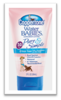 - NEW! COPPERTONE® Water BABIES® Pure & Simple 2oz: Offers sun protection that’s tear-free in an ideal size for the diaper bag. The ultra gentle formula is mild for babies’ delicate skin and won’t sting or irritate eyes.
