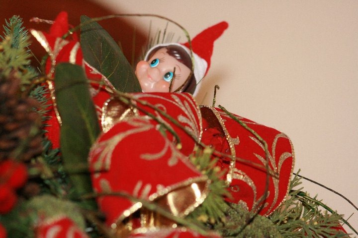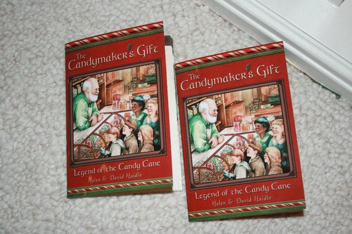 The Candymakers Gift, the Legend of the Candy Cane and way on top of the stairway inside a Christmas wreath… this little read head and little blue eyes appeared….