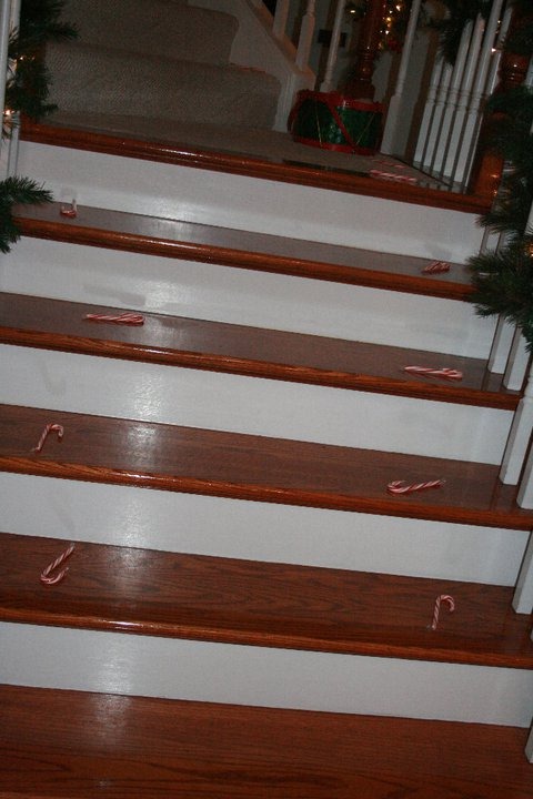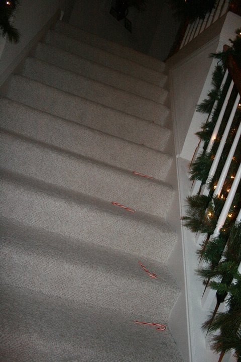 We found a trail of Candy Canes all through our house…. we followed the Candy Cane trail and on top of the Stairs we found this…..
