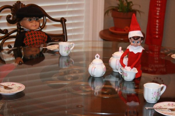 While we were out and about, getting ready for Christmas… our little mischief elf had a party of his own; he invited all the American Girl Dolls and see what came out.