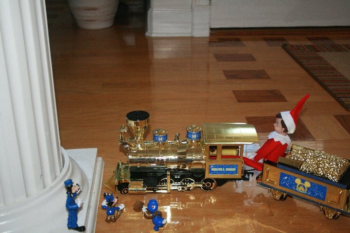 All Aboard! … Tschukatschukatscha…. Tschutschu……. All Aboard… this is what Curtis did with our Christmas Tree Train; he even talked Goofy and Mickey into being the Conductors…. Wonder how long he was riding around the house before we came home….. battery sure seemed a little slow….:0)