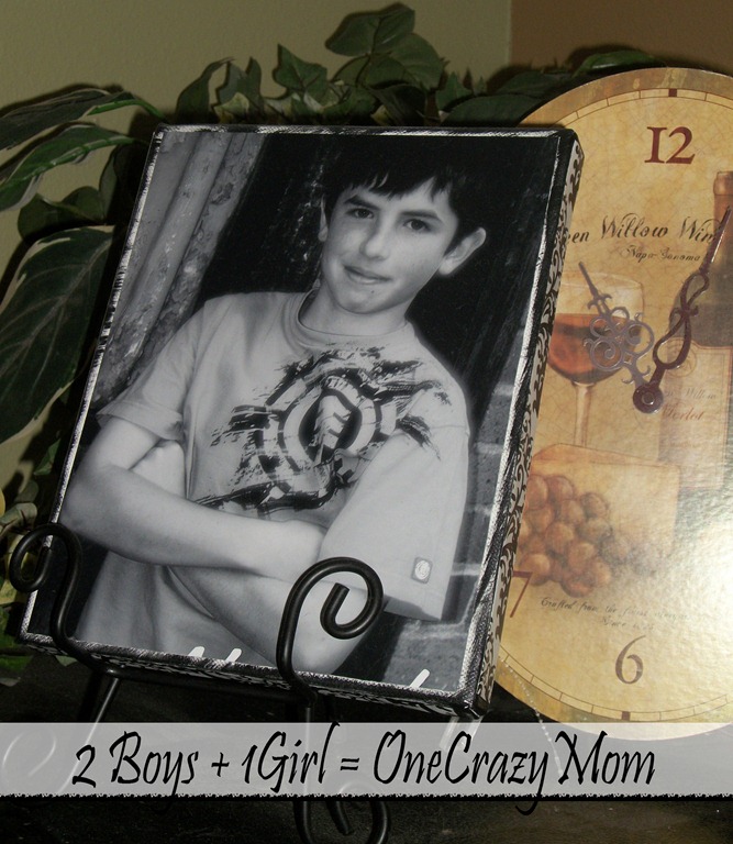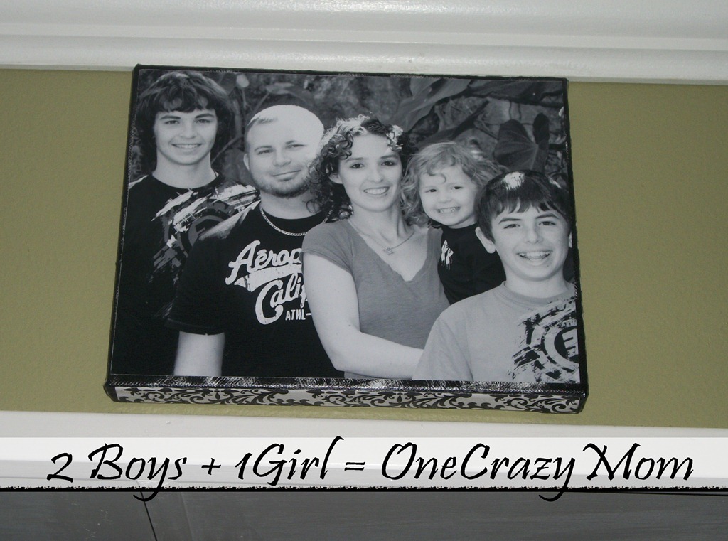 1 picture of your choice to match the size of your canvas; black and white picture or color, but I highly recommend you order them at your favorite photo store like Walgreens, CVS, Snapfish etc… the home printed ones smear, the “Store” bought pictures don’t.