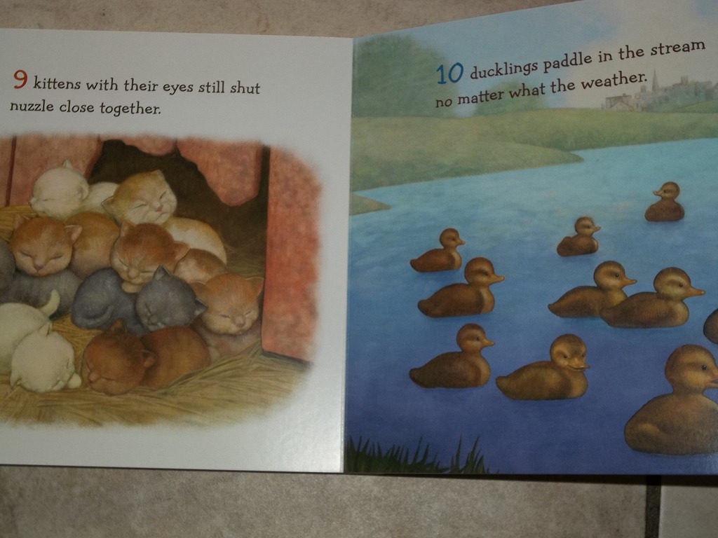 The Easter Babies book is just such a fun and colorful book for little ones of all ages; I would say that you can read this book to your newborn and as they grow older they will show interest in the entire book and start pointing out the animals like the kittens, the ducklings or the nestlings. Besides all the fun baby animals, there is also a counting theme going on. The book will teach your little one in a fun and “Easter” way to count from 1 to 10 with lots of Baby animals along the way.