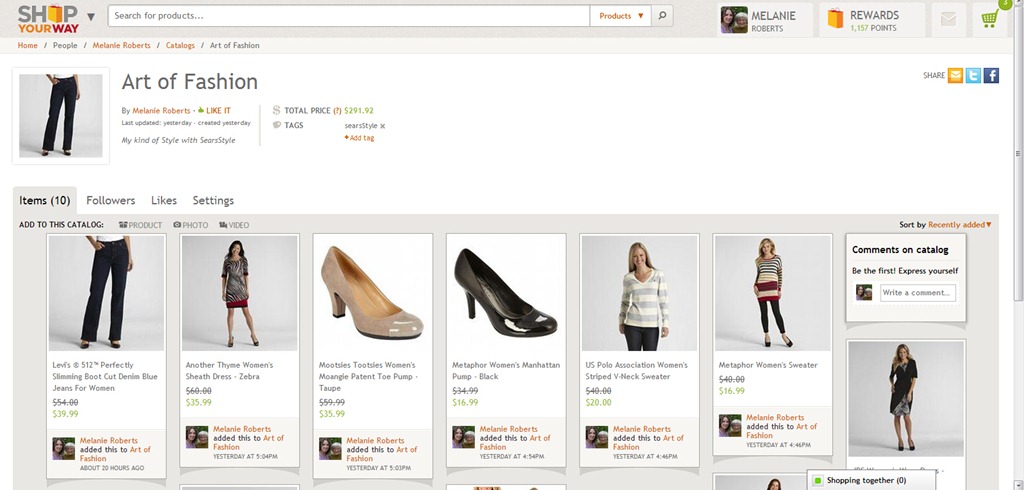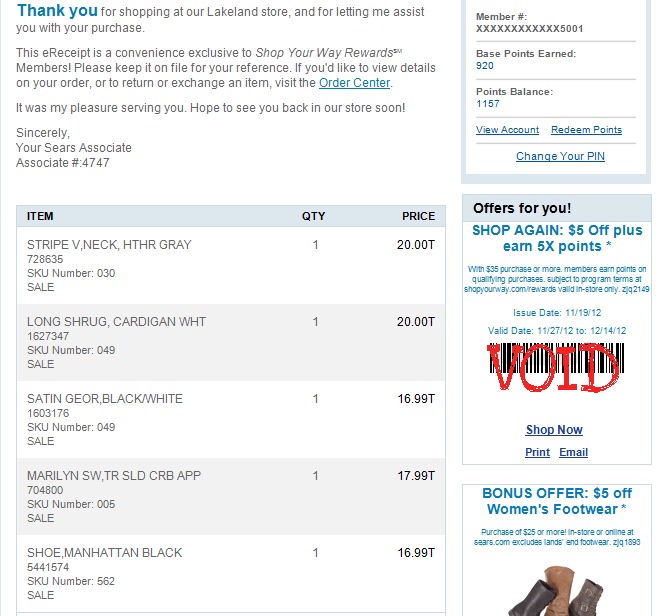 Sears is one of my favorite stores. They reward you for your loyalty. The outfits like nice also.