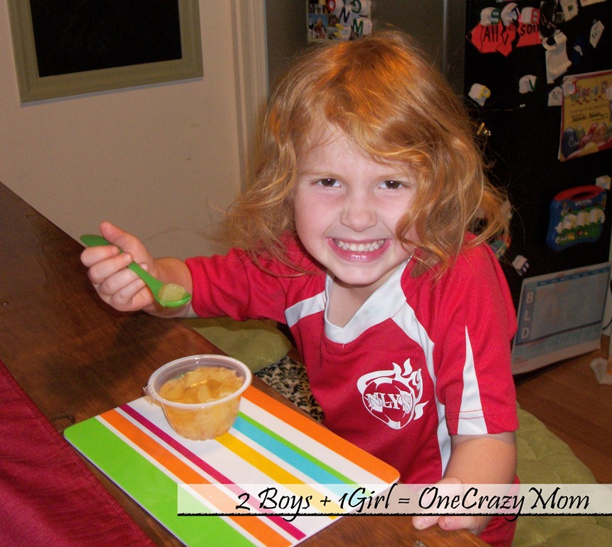 My Princess came home from Pre-K the other day and the first thing was “Mom, I want a snack”. I told her to see if we have some crackers in the cupboards and she told me “Mom, I need something healthy, some fruit or veggies will do”. I was a bit surprised by her answer, she’s 4. But I had figured out that they just learned about healthy food choices in class and she immediately tried to implement that at home for her very own snack. I loved it!