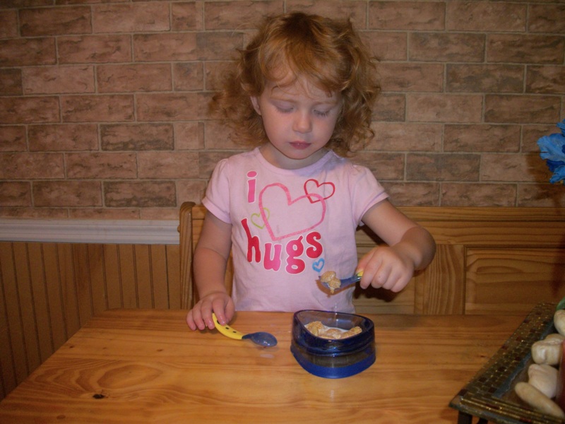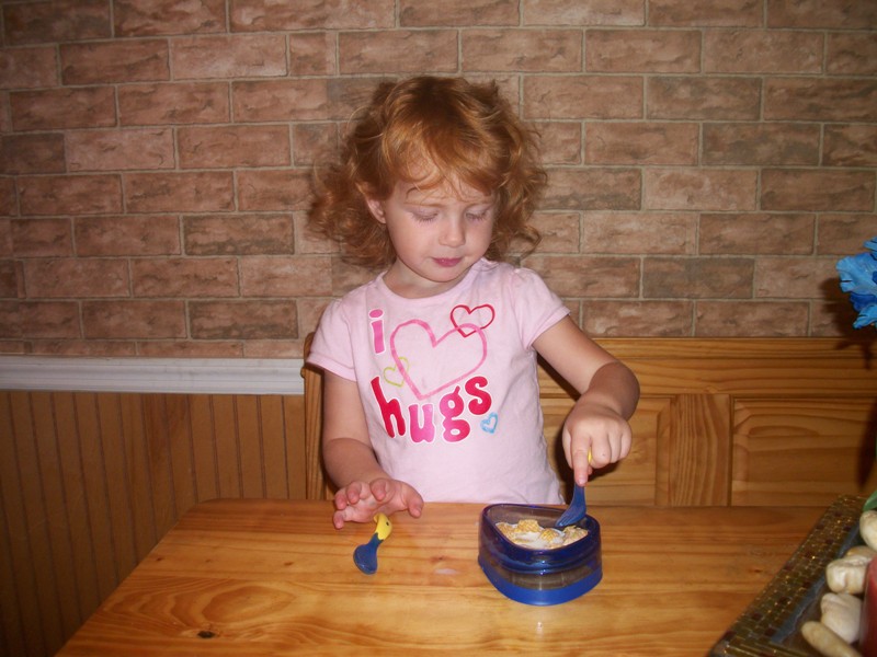 know they end up on the floor with the bowls moving; with this bowl I let her have the milk and she did awesome, the bowl wasn’t moving at all while she tried to feed herself like a big girl.