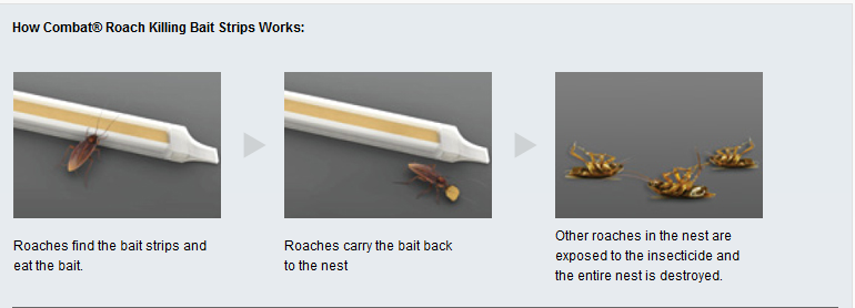 The new Combat Roach Killing Bait Strips are super cool, they are discreet, you can hide them inside cabinets, under counters by the door, wherever Roaches may hide out in your home and they are easy to apply and best part…NO MESS. These strips kill fast and will keep on killing for up to 3 month, you heard me right.. 3 month! One package has 10 strips and that will last you 3 month if you use all ten strips to keep bugs out of your house. You can use these strips indoor or outdoor, making it perfect for under the window or door, where these bugs like to come in, especially after a rain storm, we see lots of them migrate into the homes.