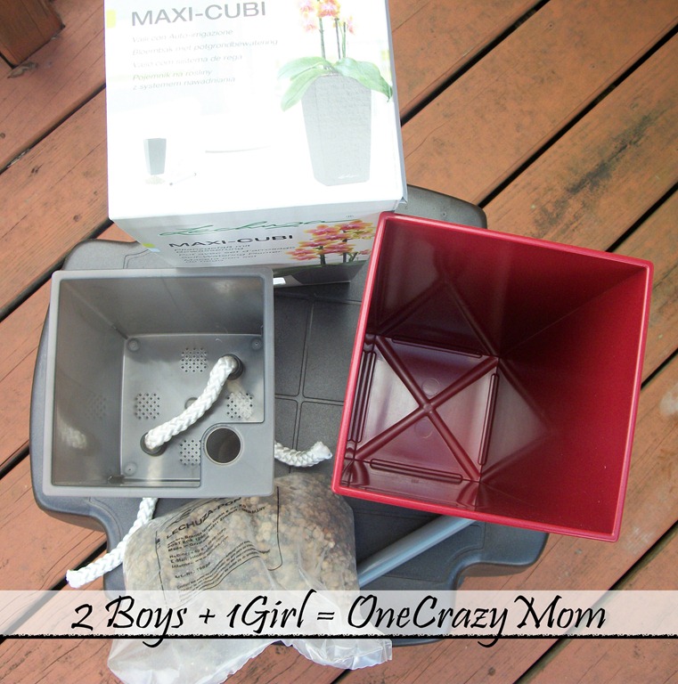 The Maxi Cube is what I received along with a Window planter, but let me show you one at a time because they are so super cool and so different. This is what is inside the box, 2 containers, one for the Plant and the gravel and one planter to collect the water that will be self watering, no more water spills, no more, did I water too much not enough kind of games.. NOPE.. this planter will handle it all for you… on it’s own!!