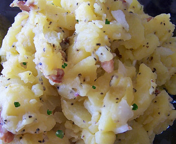 Have you ever had bavarian German Potato Salad? It is soo different from the American Salad. i don’t use any Mayo or heavy creams, it’s soo yummy. My Favorite is when the salad is still warm… ohh soo yummy.