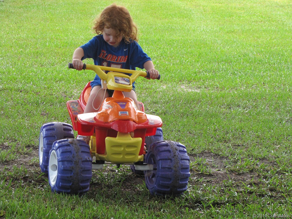 It was the perfect thing to do, I even sat down and toured a bit. Can you believe this thing goes up to 10 miles an hr.? My Toddler was flying until we figured out how to make her speed lock in at 2 MPH… That was scary.. and this is a Fisher Price Product.. WOW… Luckily we kept her in the grass and on the dirt.. she had a blast