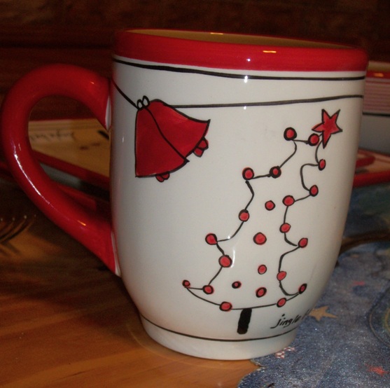 How cute is this Dinnerware set? I love the look of hand-painted Christmas Trees on the Salad plate and the Cups, and the HO HO Ho on the Dinner Plates and Cereal Bowls. This is such a fun Set;