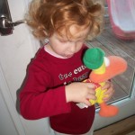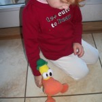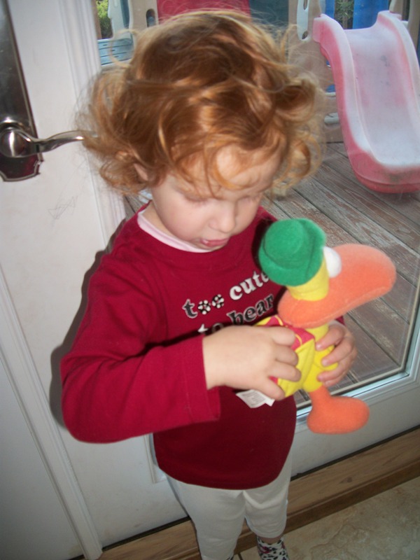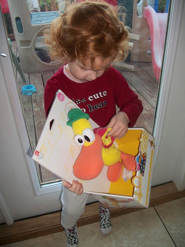 Pato is this lovable, hug-able plush animal that if you push his drum’s it plays the familiar musical sounds from the show. To me it was quiet annoying but my Toddler loved it and I must say the dogs both fought over it, too. We actually had to hide Pato on top of a shelf when he wasn’t played with, because it happened a few times one of the Pups snug out of the house with Pato and we could hear im singing in the back yard :-).