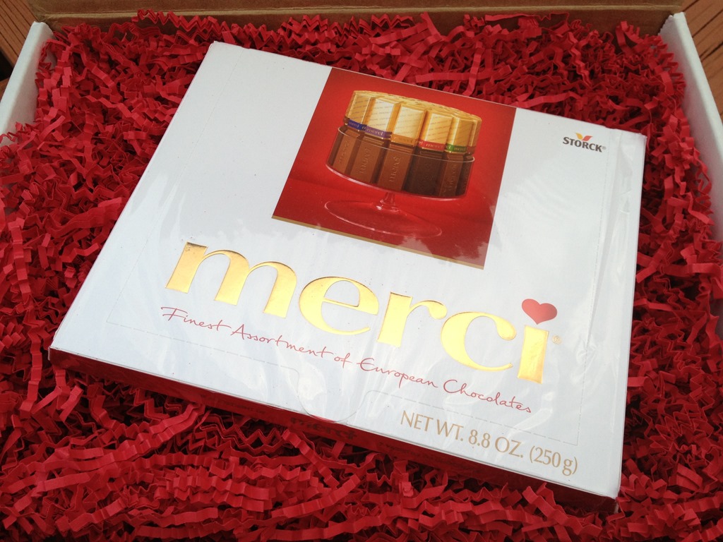 During the Holidays, I introduced you to a wonderful German brand of chocolate called “Merci”. These chocolates are delicious, creamy and come in many different flavors, all in one box. Back at home in Germany, merci is a special treat for special occasions and I remember my Grandma would always bring me a box for my Birthday. I gave a lot of these boxes to my family and friends as well as some readers during Christmas and it always brought a smile to everyone face.