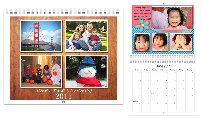 The Premium calendar features 12 laminated, glossy photo pages that give your pictures a little extra pop, and matte date pages allow for easy writing. Use photos from 2010 to create the perfect gift that is enjoyed every day of 2011!