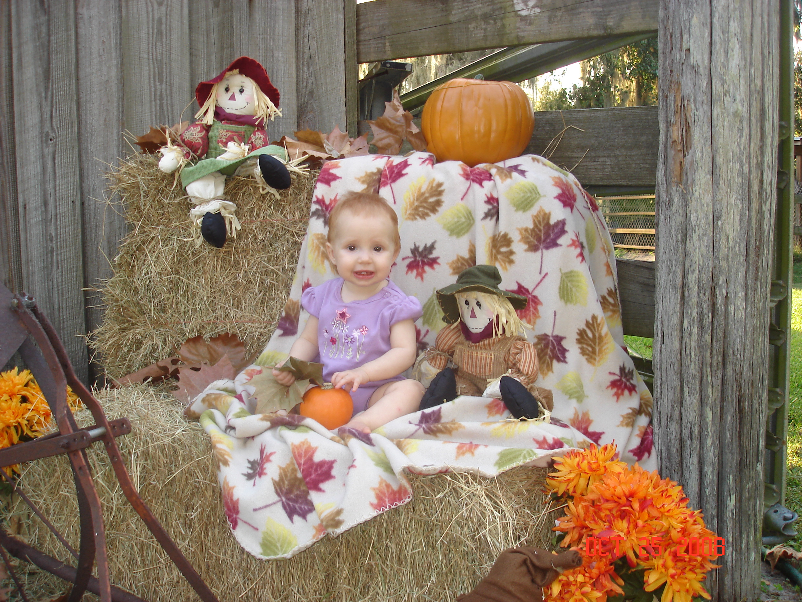Next we just decorated some hay that we had in the backyard… soo simple but yet makes it look like fall….
