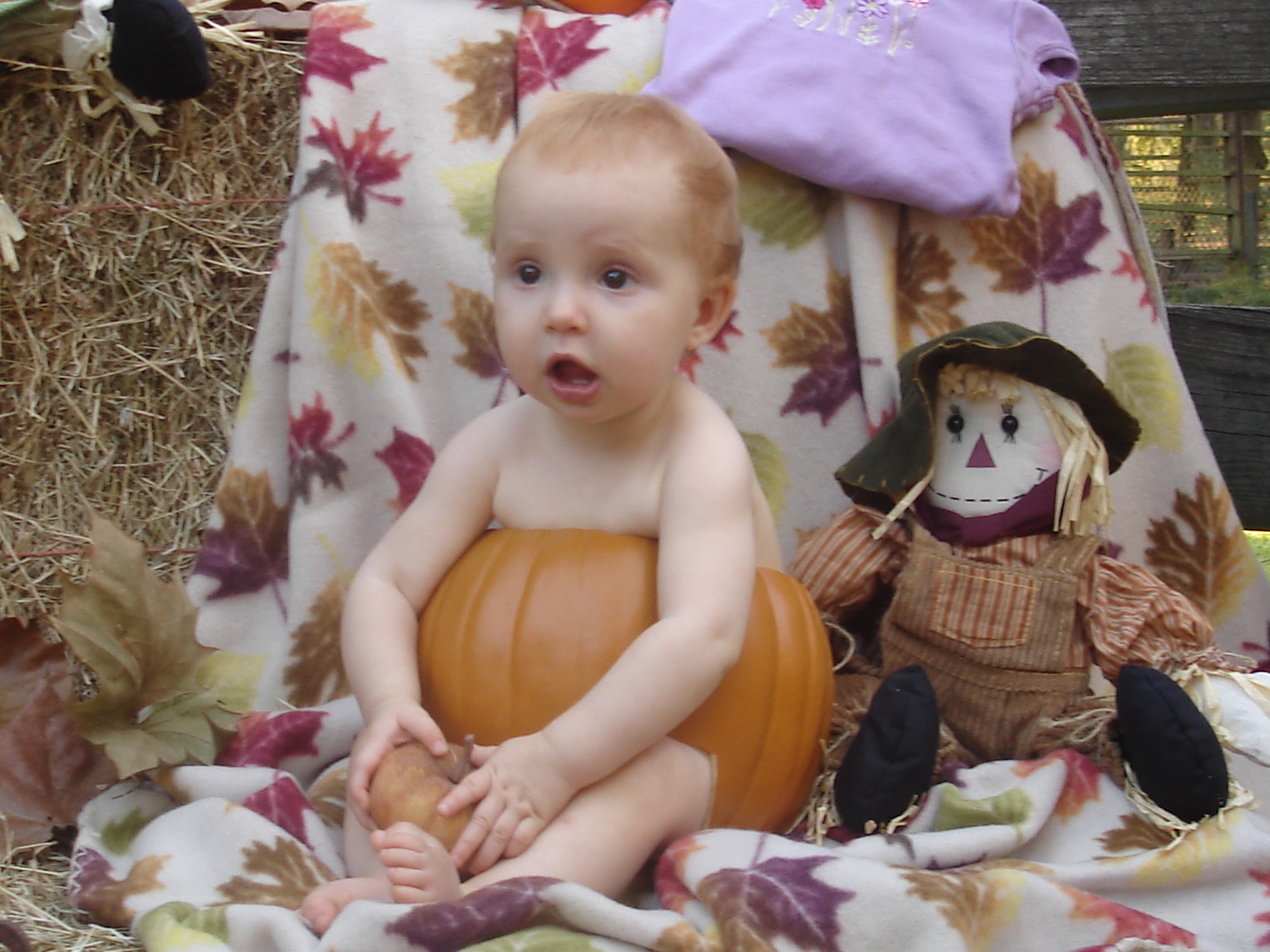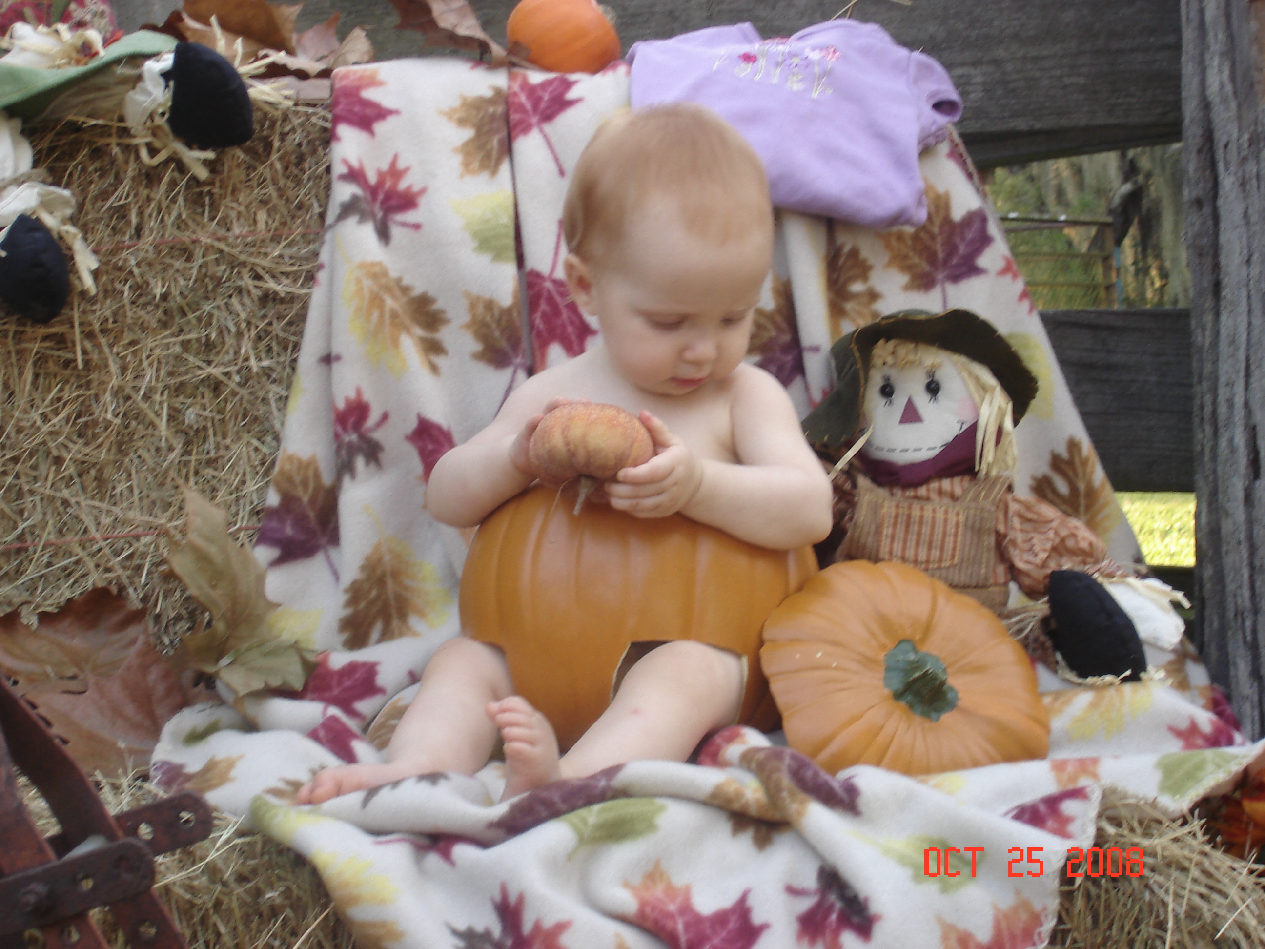 Also this is a cute Fall theme picture op; I love to take pictures, so I decided to go to Michael’s and pick up one of those foam pumpkins and make it a “pants” for my little Punki ( we call our little one Punki). Simple yet cute idea… check it out…. I do have to say the Foam was very easy to cut, just make sure you have a sharp knife, also sand the edges a bit so they don;t scratch the little ones…