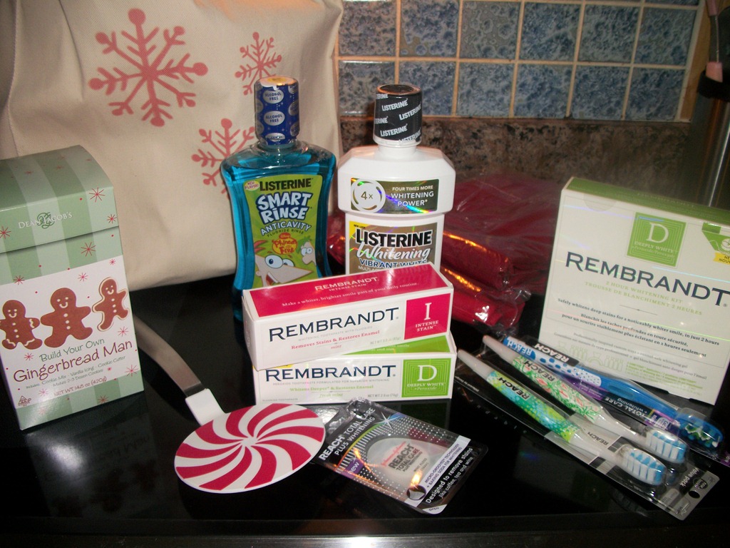 Contents of the kit will include a gingerbread making kit, peppermint spatula, and an apron for both mom and child, all packed together in a reusable snow flake grocery tote containing REMBRANDT®, REACH® and LISTERINE® oral care products. These ingredients combine to make the perfect family friendly activity for all to enjoy together!