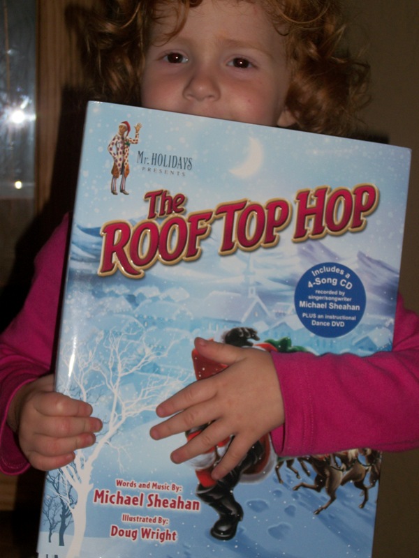 This Book comes with a Music Cd that has 4 songs recorded by singer/songwriter Michael Sheahan and also an instructional Dance DVD so your little Santa Helper can learn Santa’s Secret Song ” The Roof Top Hop”.