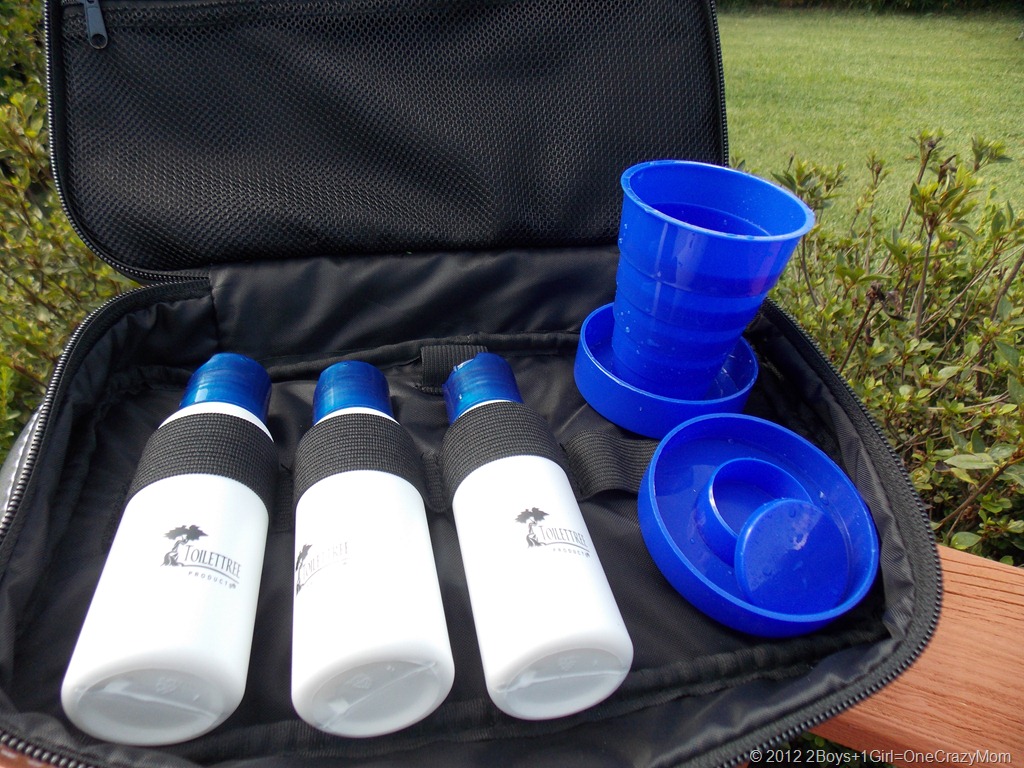 To my surprise, the bag had two compartments, one for your own bottles like soap, shampoo, razors, medications etc and the second compartment actually had travel size bottles, tooth brush holder and my favorite a water cup that collapses and even holds a few pills in the lid of the water cup; LOVED that..the water cup is by far my favorite feature about this entire bag, but the BAG is super cool as well!!! Well, as always pictures speak more then a thousand words, so here are lots of pictures, take a look for yourself. (P.s. I don’t have the toothbrush holder in the bag, I forgot to take it out of my suite case when we got here and it’s in the car.. sorry.. but it is part of the bag and does fit inside the bag nicely).