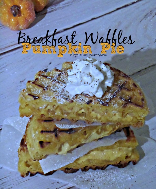 I think we will try to add fresh apples or pears another fall flavor next time we make these breakfast waffles. I can’t wait to dish them up again. It was a lot of fun making them, took no time at all and everyone loved them. They tasted just like a Pumpkin Pie, I think even better. You just have to try them!