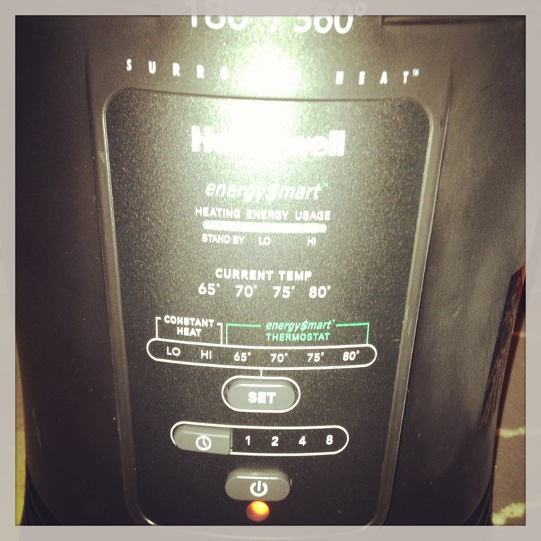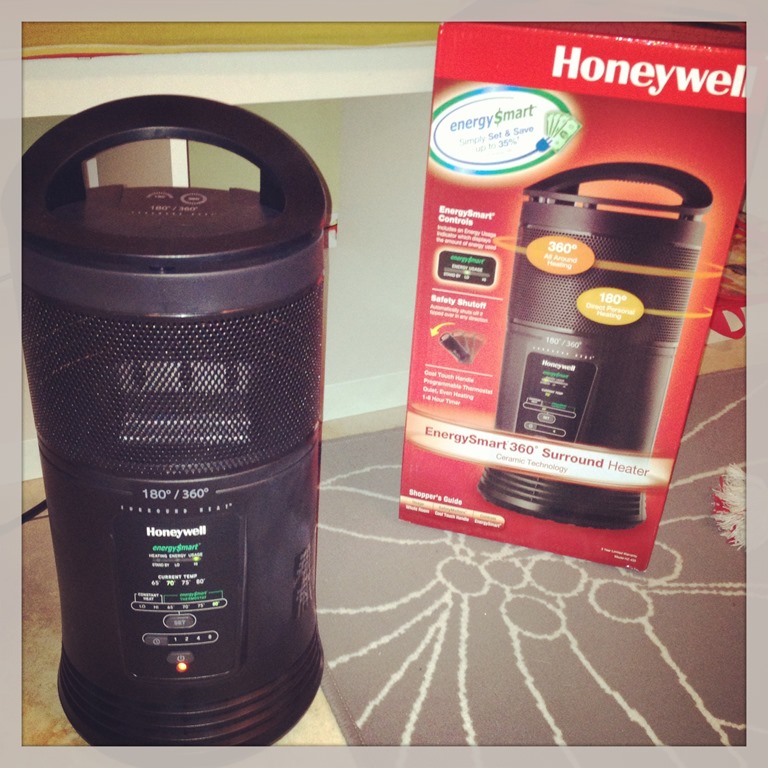 Guess what I did the other day. I was kind of under the weather and in perfect timing this Honeywell EnergySmart 360 Surround Heater arrived at my door; I grabbed my iPad and a fluffy blanked and curled up on the couch and read one of my favorite book ”The Help”. It was so comfortable with the new heater giving off just enough heat to make the room a nice 75degrees, that was perfect. I had no idea that heaters are that fancy nowadays. With the new EnergySmart Honeywell heater you can adjust the room temperature, set a timer and keep track of your energy bill, run on low or hi and if the heater gets tipped over by the kids or dogs it will shut off. Simply a perfect solution for my office.