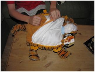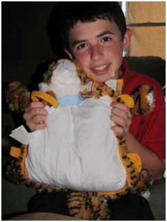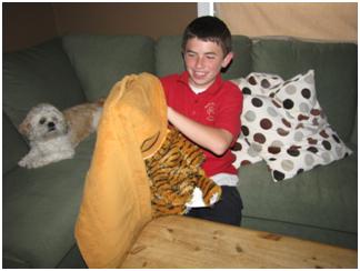As soon as the Tween got home, he found the box and quickly opened it to check out his Tiger. He pulled it out and stopped and looked at me. I thought “Oh, Oh… “. He turned and said” Wow, this is HUGE, a lot bigger than I expected Mom”. He thought it would be the size of maybe those little baby blankets with a stuffed animal attached, so he was really surprised to see a full size blanket attached to his tiger. The next impression he gave me was “this is so soft, I can’t wait to cover up in this, I bet it will keep me warm’. I had to check it out and indeed, it was a wonderful soft fleece fabric, even softer than the baby blankets that I have for the Toddler. The Tiger and blanket looked very sturdy as well, all the seams are worked nicely and clean and perfect. This is a very well made Tiger/ Blanket Pillow. I have to admit, I’m very impressed, every little detail is perfect. I also really like that the eyes of the Tiger are stitched on his little cute face, instead of the button eyes, a lot safer for the little ones and makes the Tiger even softer. Wonderful product, we defiantly will pick up another for the toddler and keep them in mind for any presents we need to buy, well worth it.